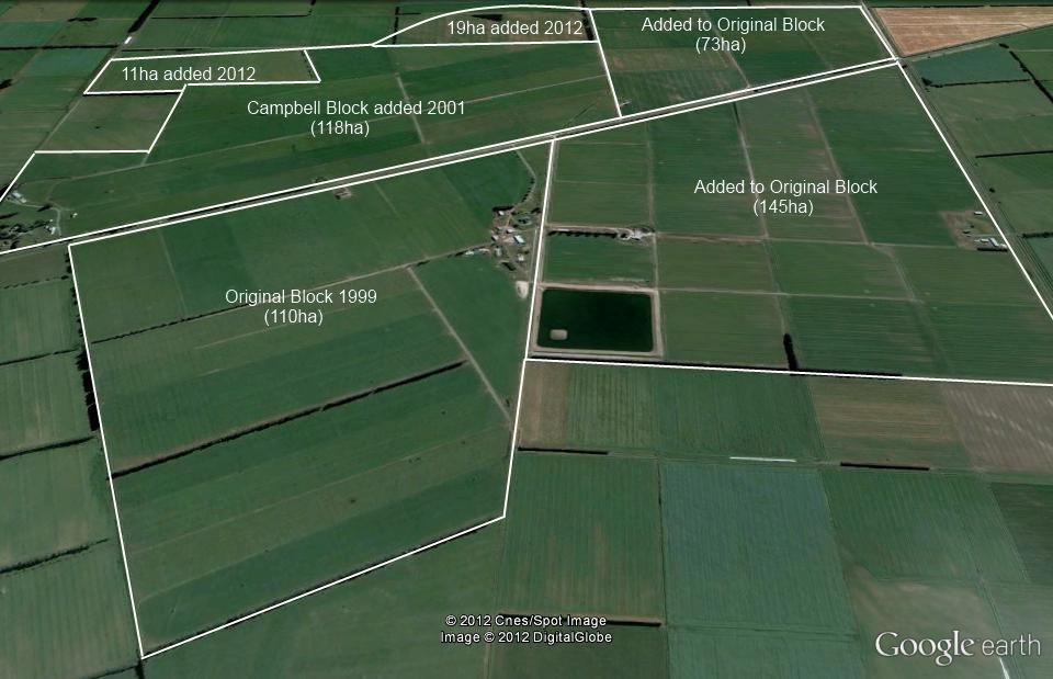 In 2001, the Macfarlane and Waddington families purchased the neighbouring 118ha dairy farm on the North side of Trevors Road. It was merged into the original dairy operation utilising an old 33 aside herringbone dairy at the Western end of the farm.